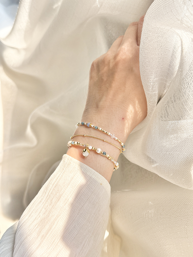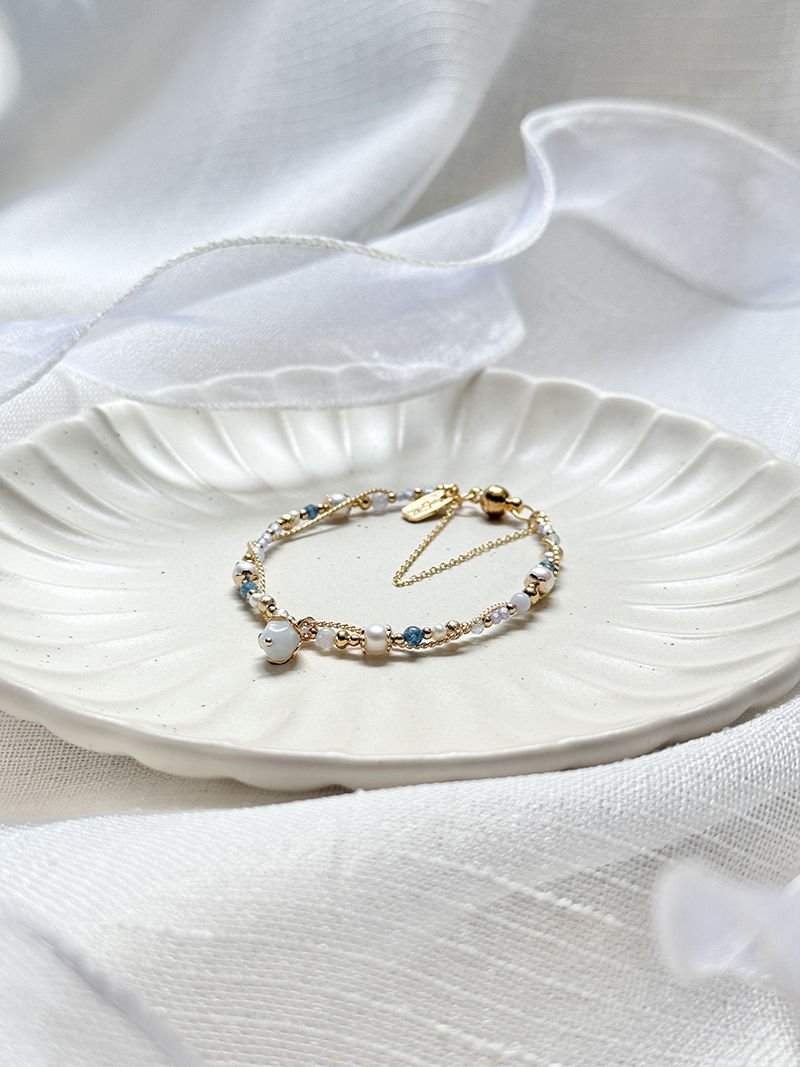 B09 / 生日花 • 捌月肆 • 圓葉風鈴草 – 珍珠海藍寶 – 手鍊