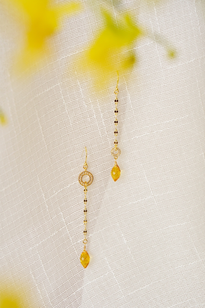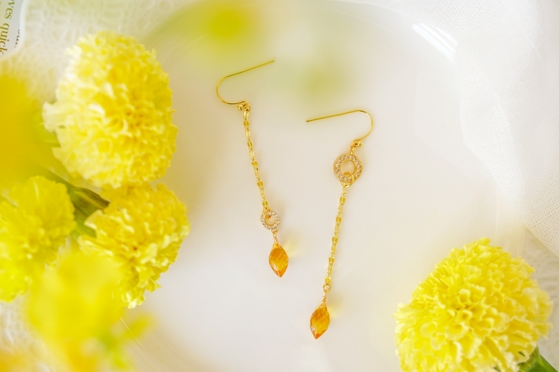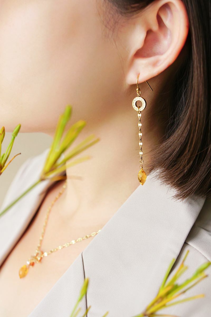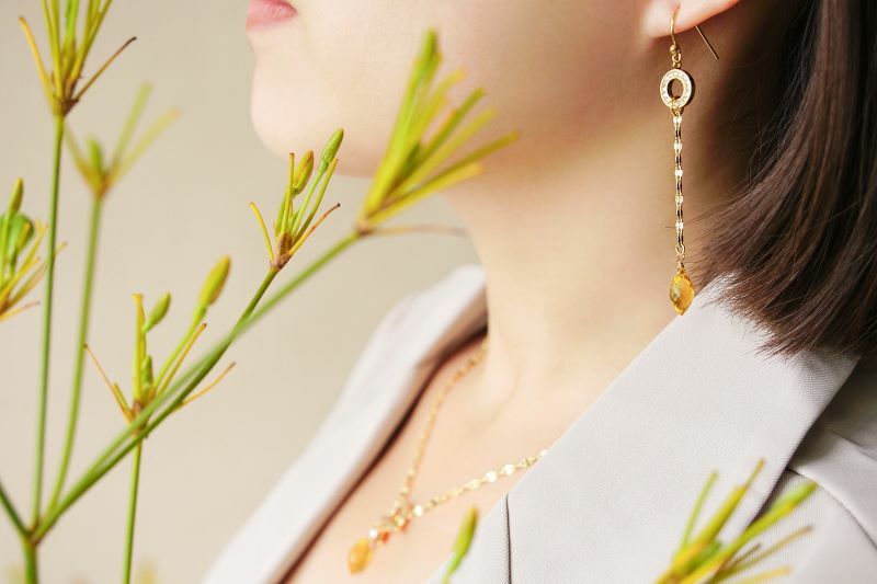 黃石英石、圓圈鋯石、黃銅鍍18K金
