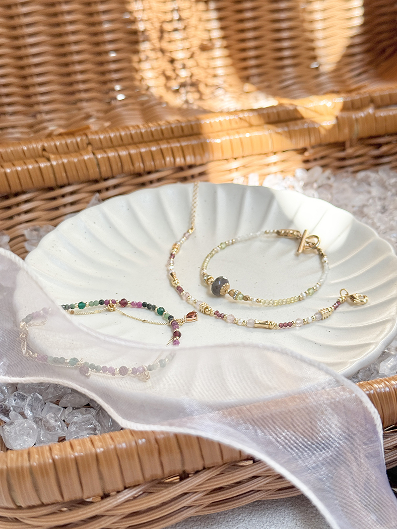 黃藍寶石、橙石榴石、月光石、淡水珍珠、14K包金微鑲鋯石滾鑽、黃銅鍍18K金