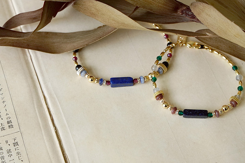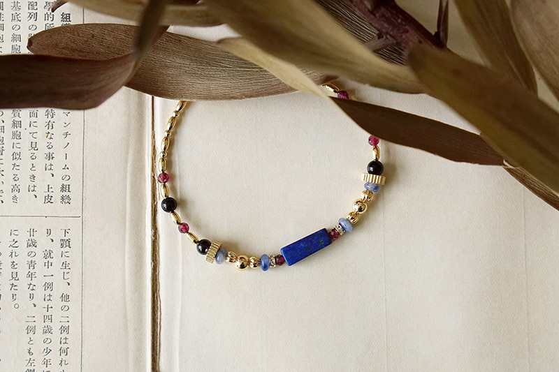 青金石、蘇打石、石榴石、鋯石、黃銅鍍18K金