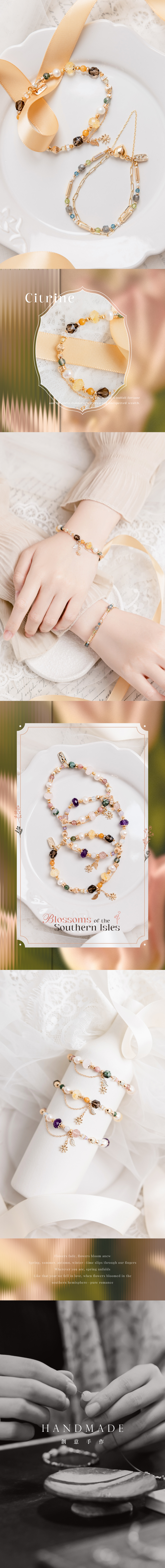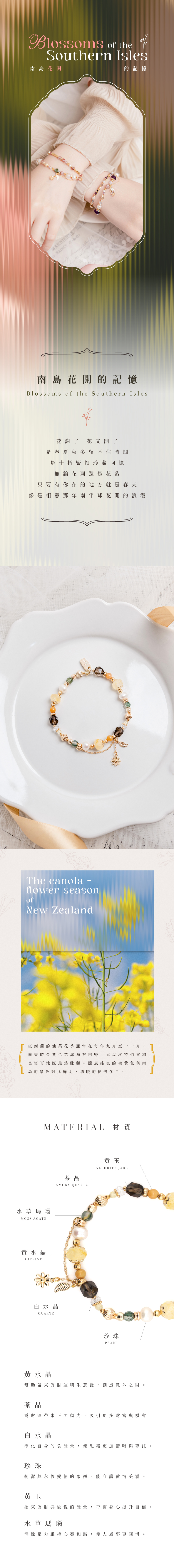 黃水晶、黃玉、茶晶、白水晶、水草瑪瑙、淡水珍珠、黃銅鍍18K金