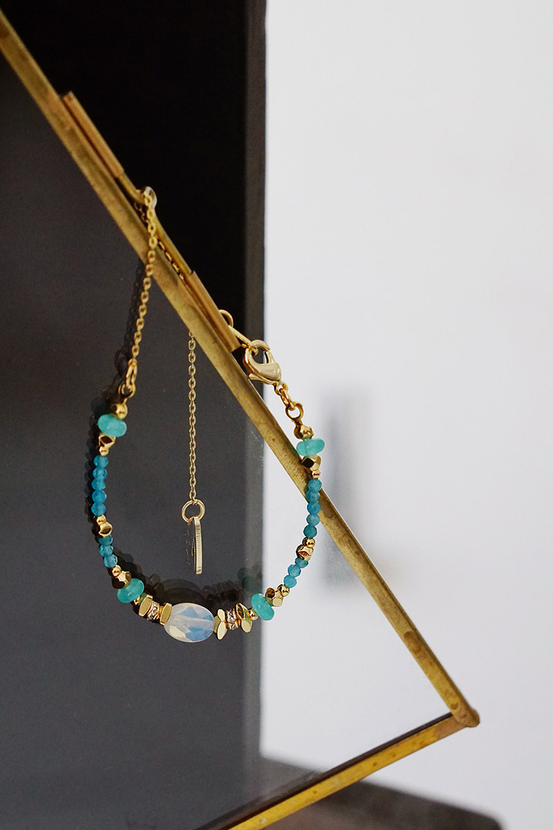 蛋白石、天河石、藍透輝石、鋯石、黃銅鍍18K金
