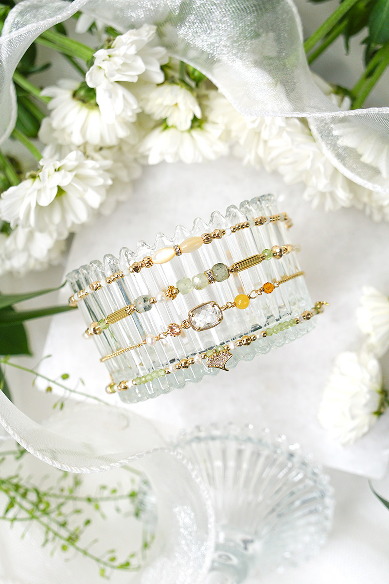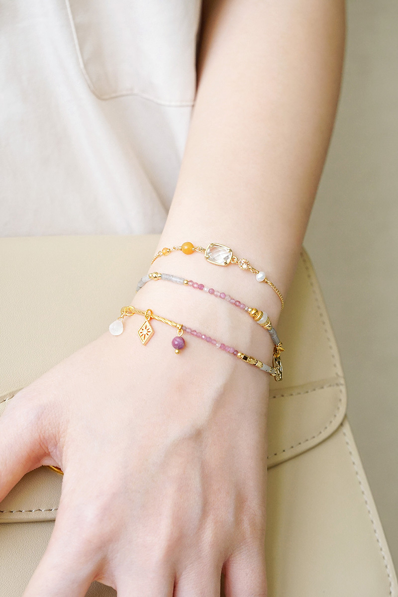 黃玉、黃水晶、彩色鋯石、水晶琉璃、淡水珍珠、黃銅鍍18K金