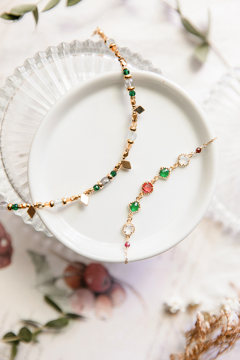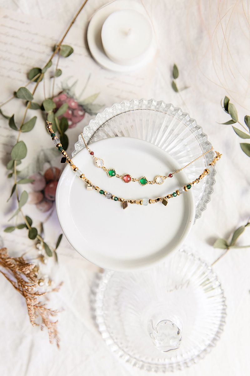 堇青石、海藍寶、黃水晶、祖母綠、黃銅鍍18K金