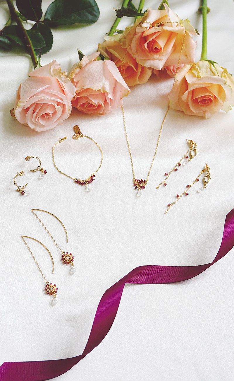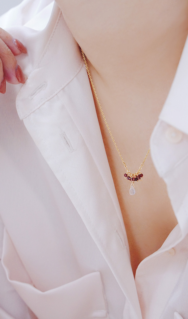 紫牙烏石榴石、月光石、黃銅鍍18K金