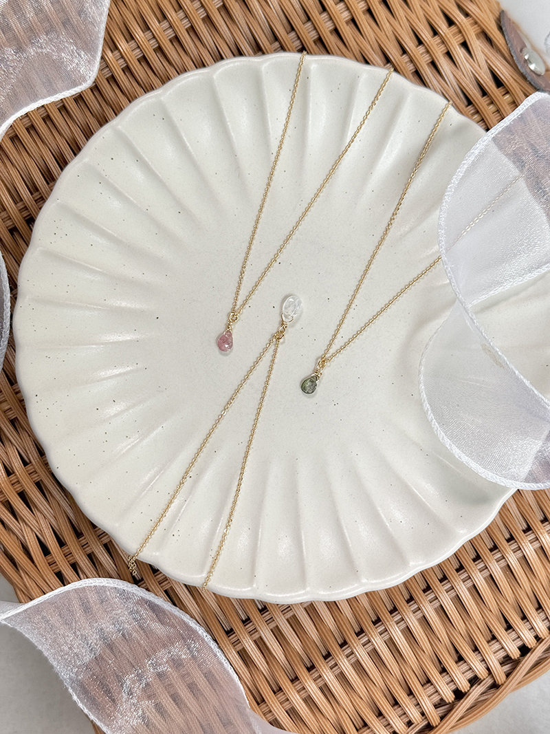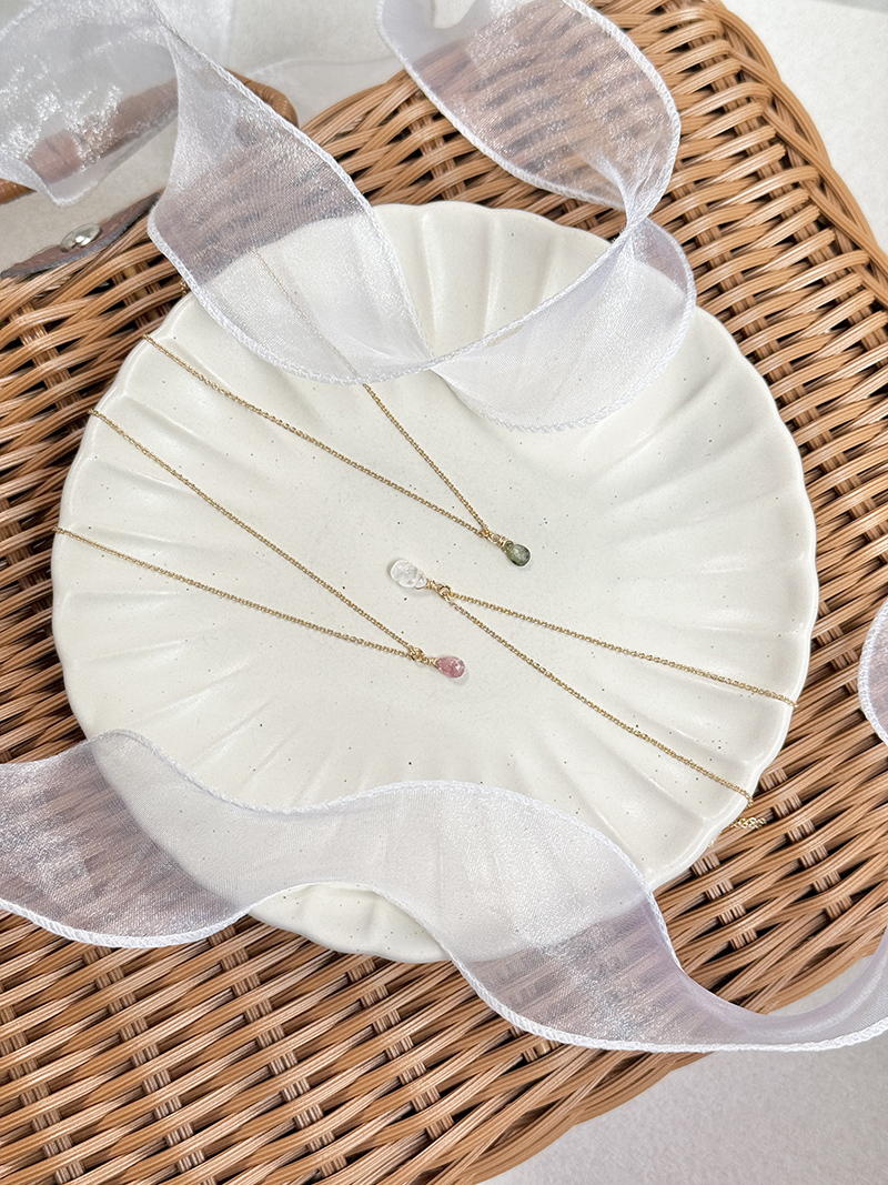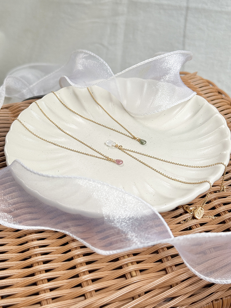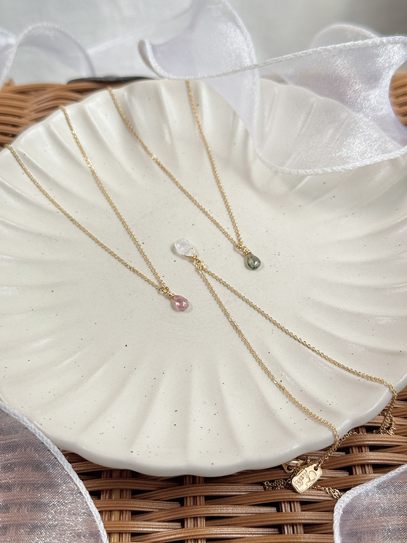 粉碧璽、綠碧璽、月光石、黃銅鍍18K金