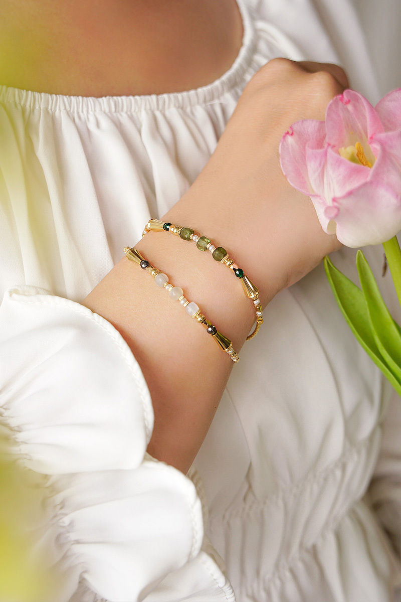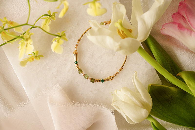綠碧璽、淡水珍珠、祖母綠、橄欖石、黃銅鍍18K金