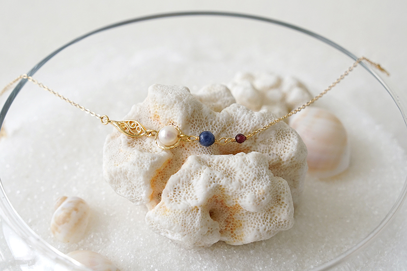 淡水珍珠、蘇打石、石榴石、黃銅鍍18K金