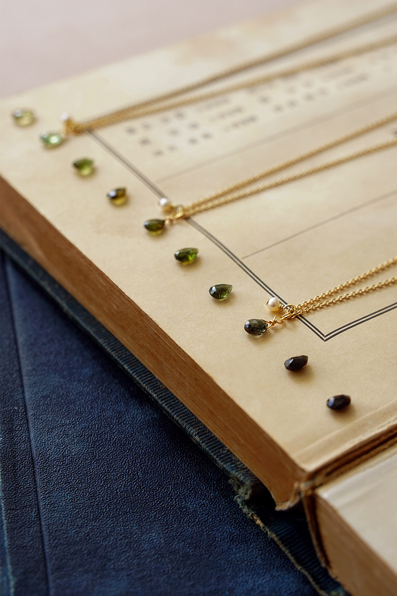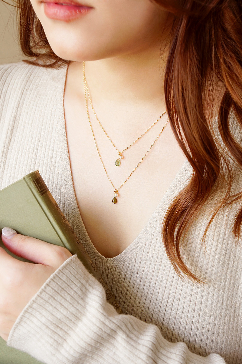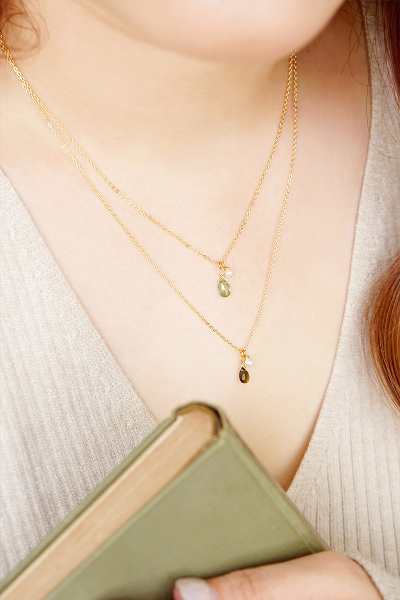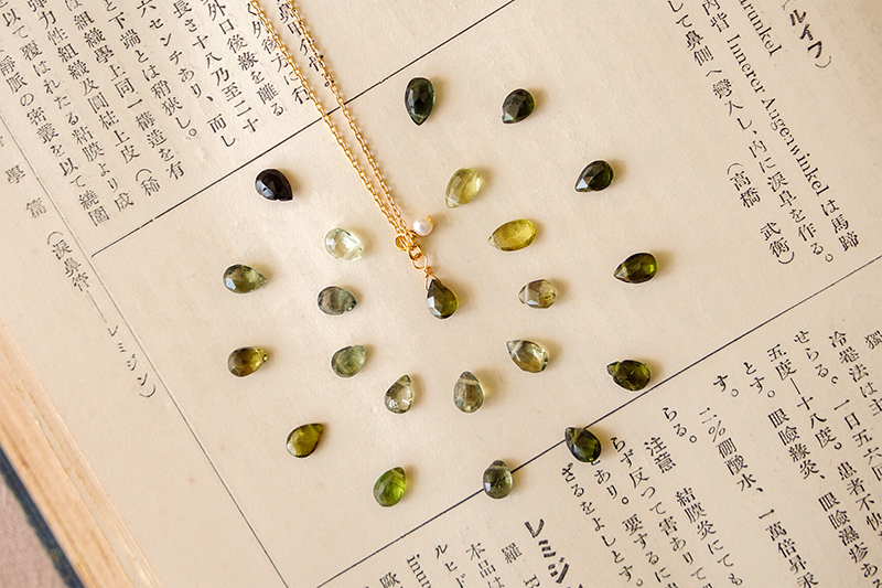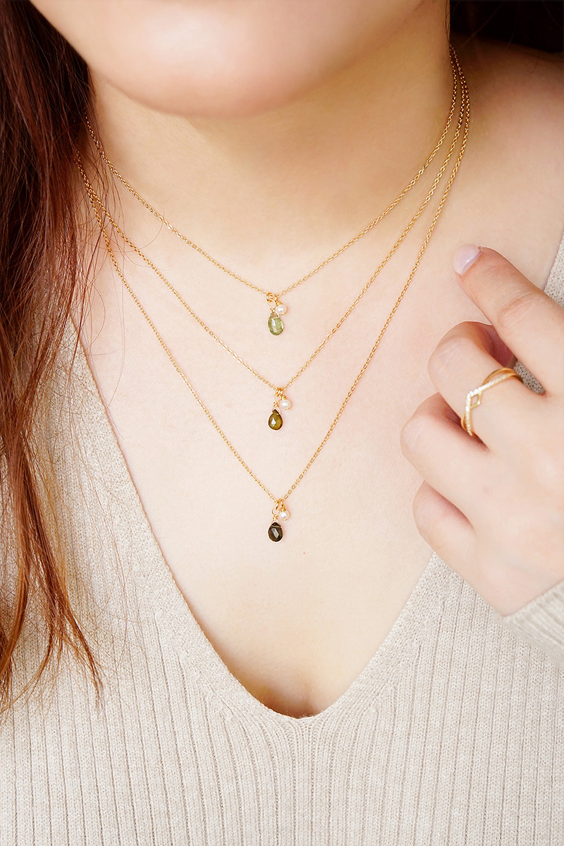 綠碧璽、淡水珍珠、黃銅鍍18K金