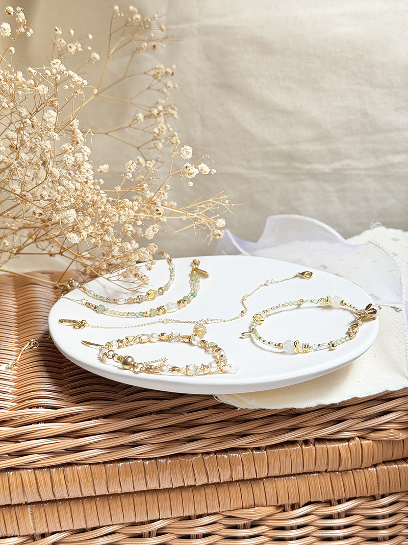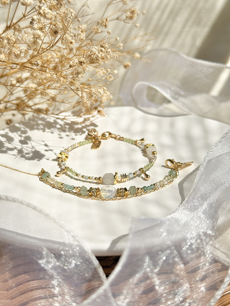 蛋白石、東陵玉、黃綠水晶、橄欖石、黃銅鍍18K金