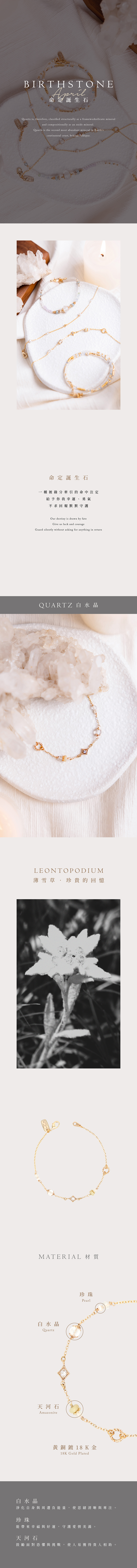 四月誕生石 • 薄雪草 • 珍貴的回憶 – 白水晶 – 手鍊