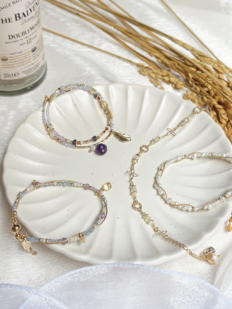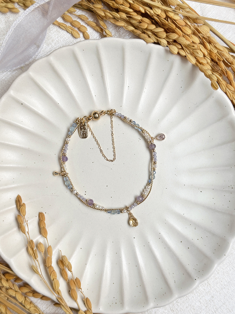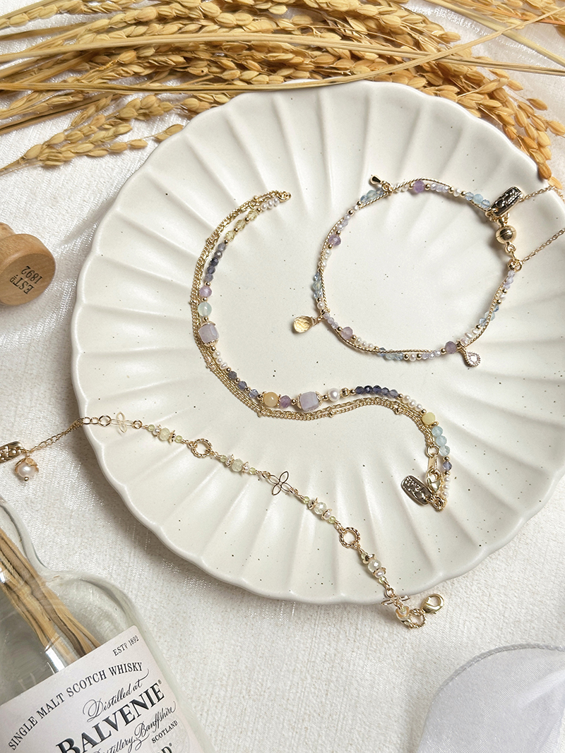 黃水晶、淡水珍珠、托帕石、紫水晶、海藍寶、黃銅鍍18K金