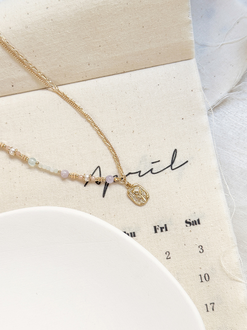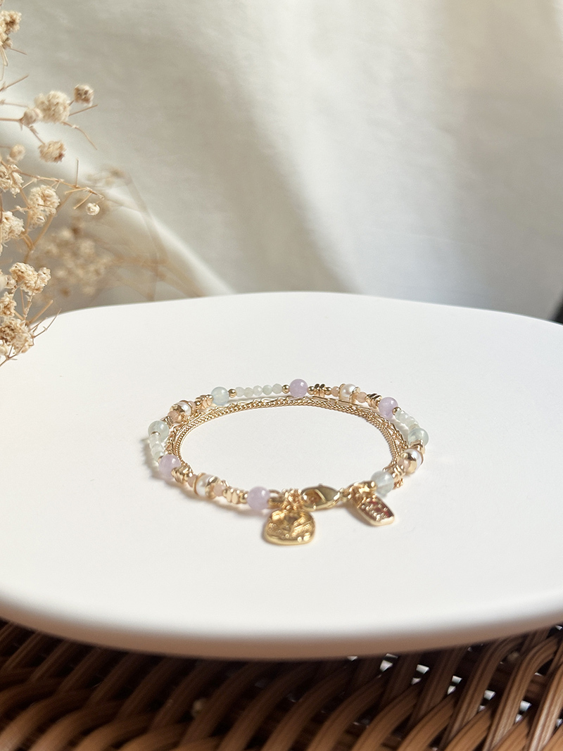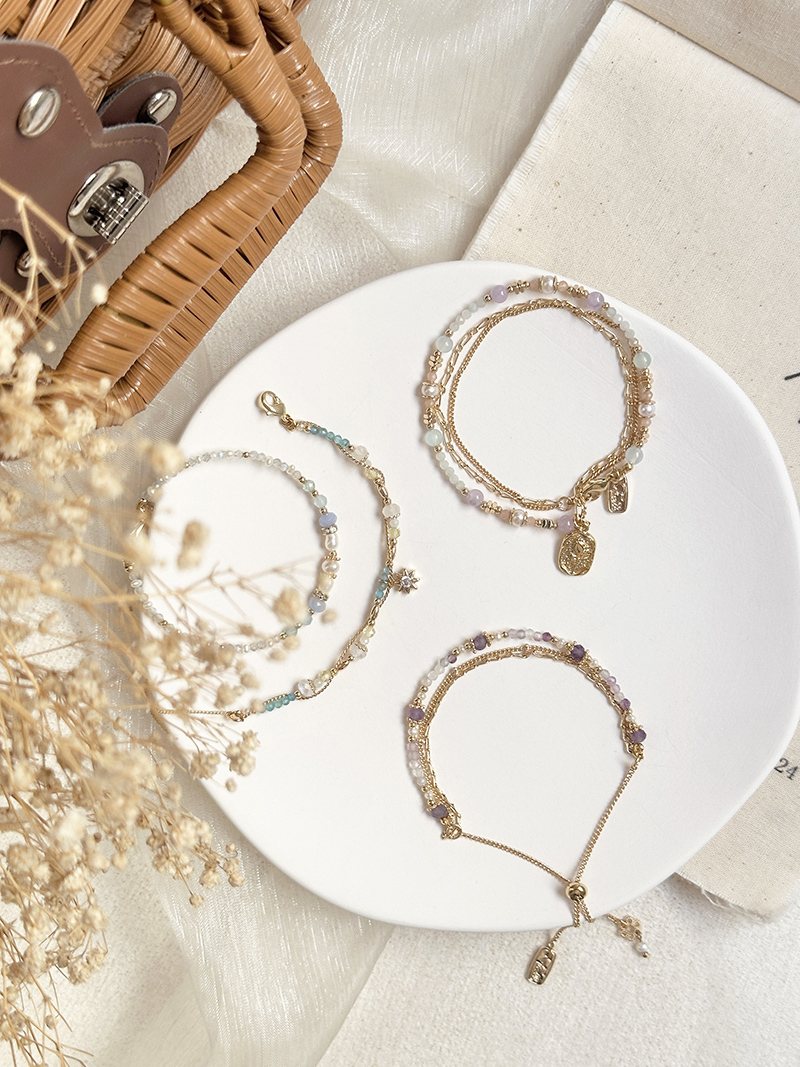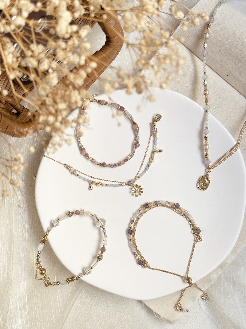 紫水晶、海藍寶、淡水珍珠、太陽石、緬甸玉、黃銅鍍18K金