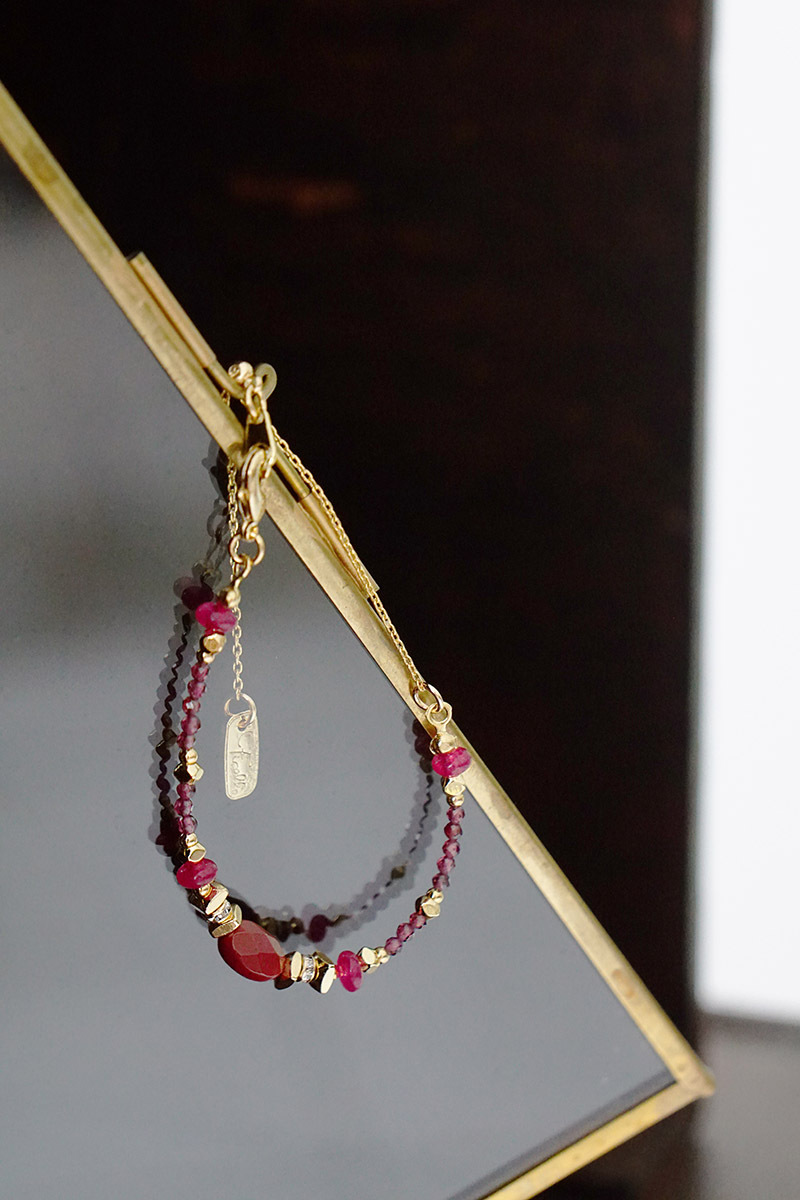 紅花碧玉、紅寶石盤珠、石榴石、鋯石、黃銅鍍18K金
