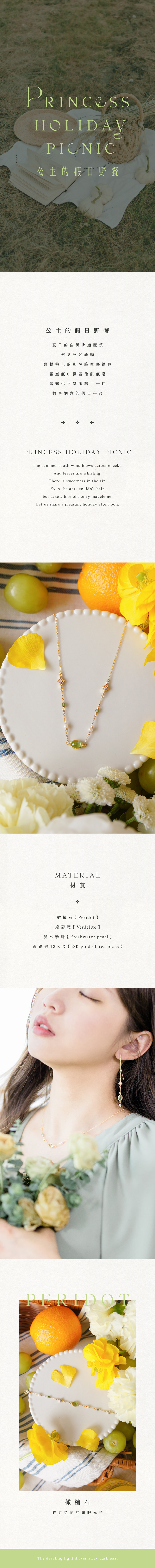 橄欖石、綠碧璽、淡水珍珠、純銀鑲邊黃銅鍍18K金